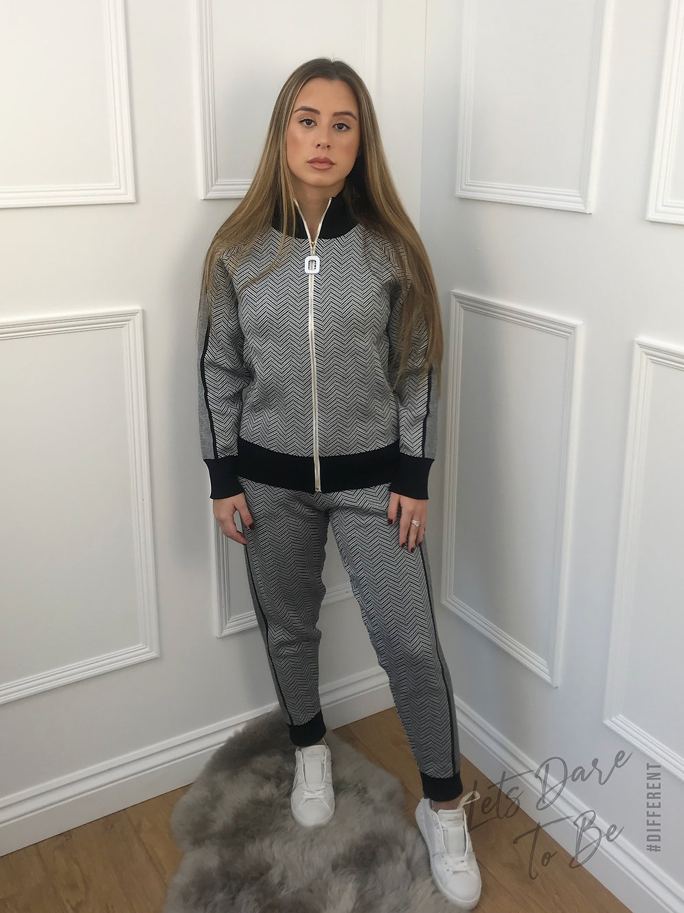 Laetitia Mem Black Zig Zag Knit Jumper Pants Lounge Set