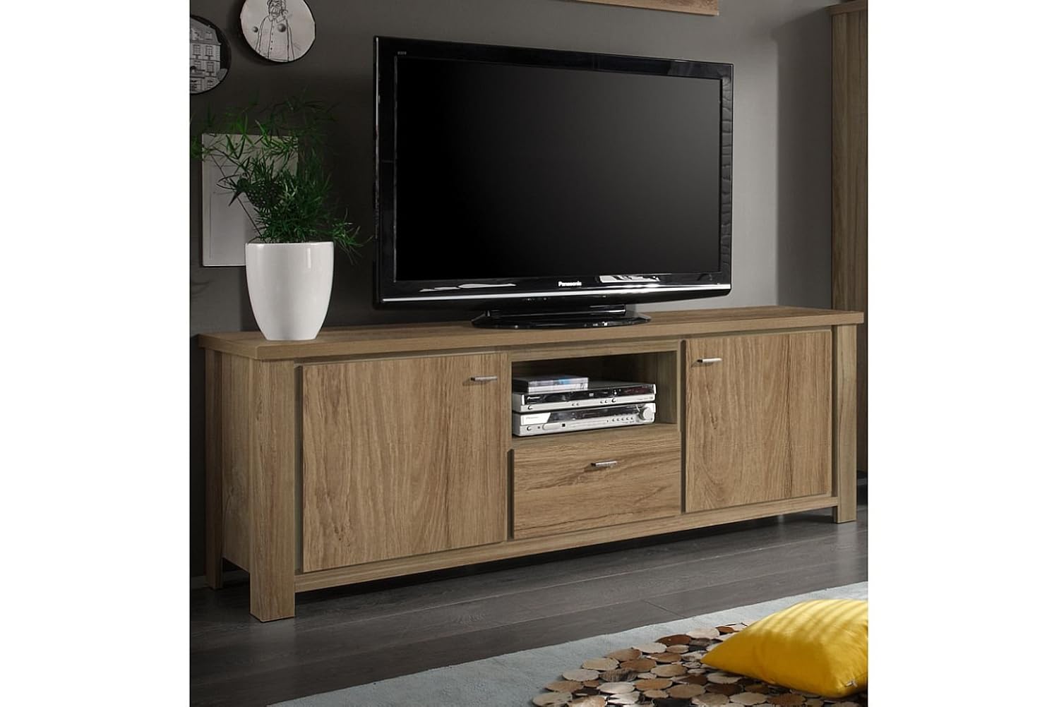 Bergamo Tv Lowboard Teakholz 2 Turen 2 Schubladen