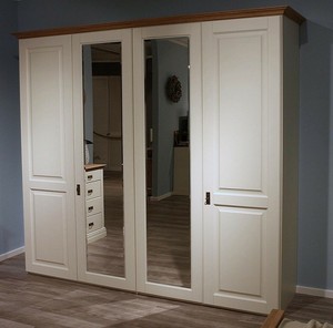 Details Zu Massivholz Kleiderschrank 4turig 214cm Kiefer Massiv Creme Eiche Spiegel Schrank