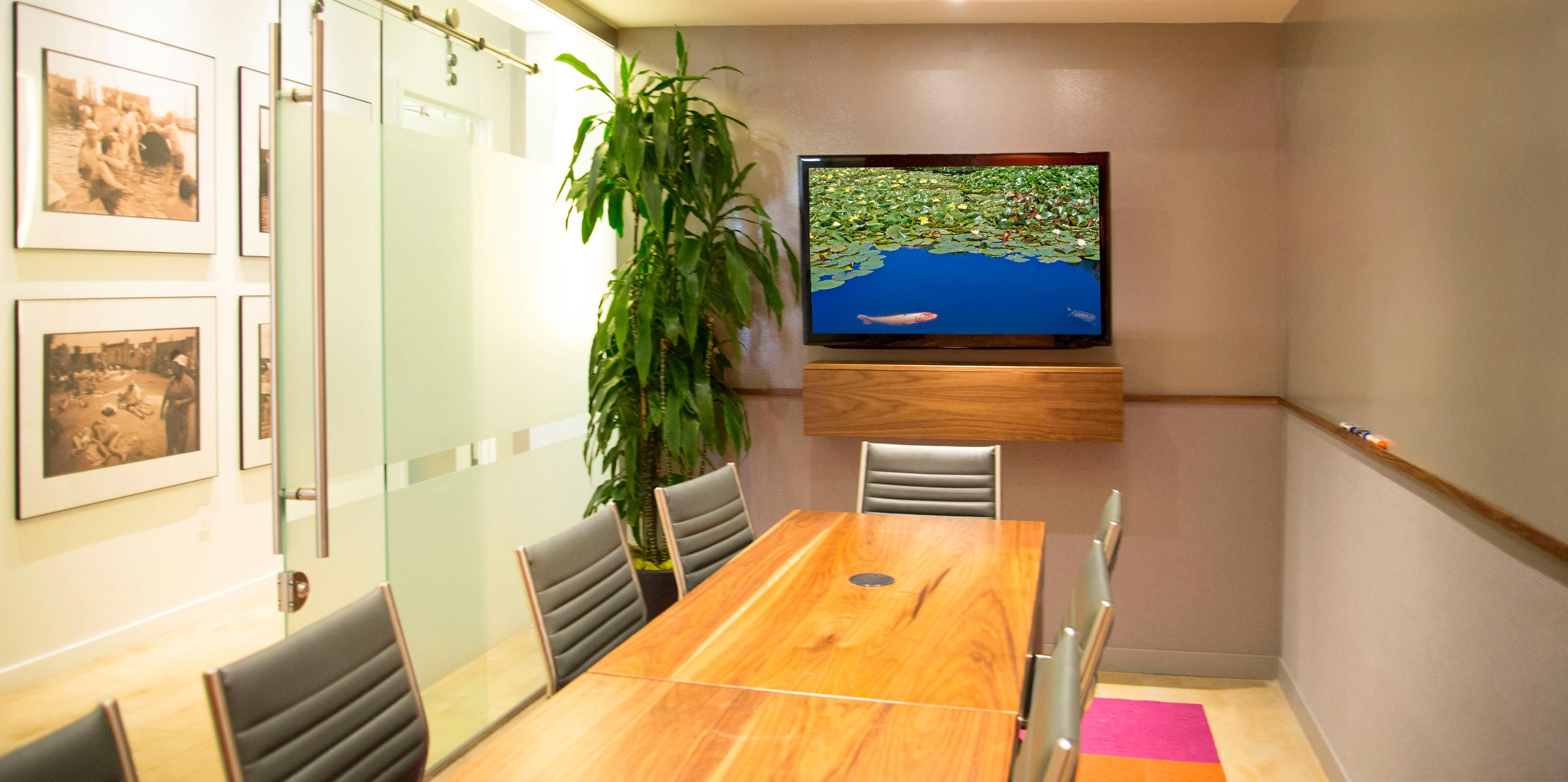 Office Conference Room With Tv Mounted On Acoustical Fabric