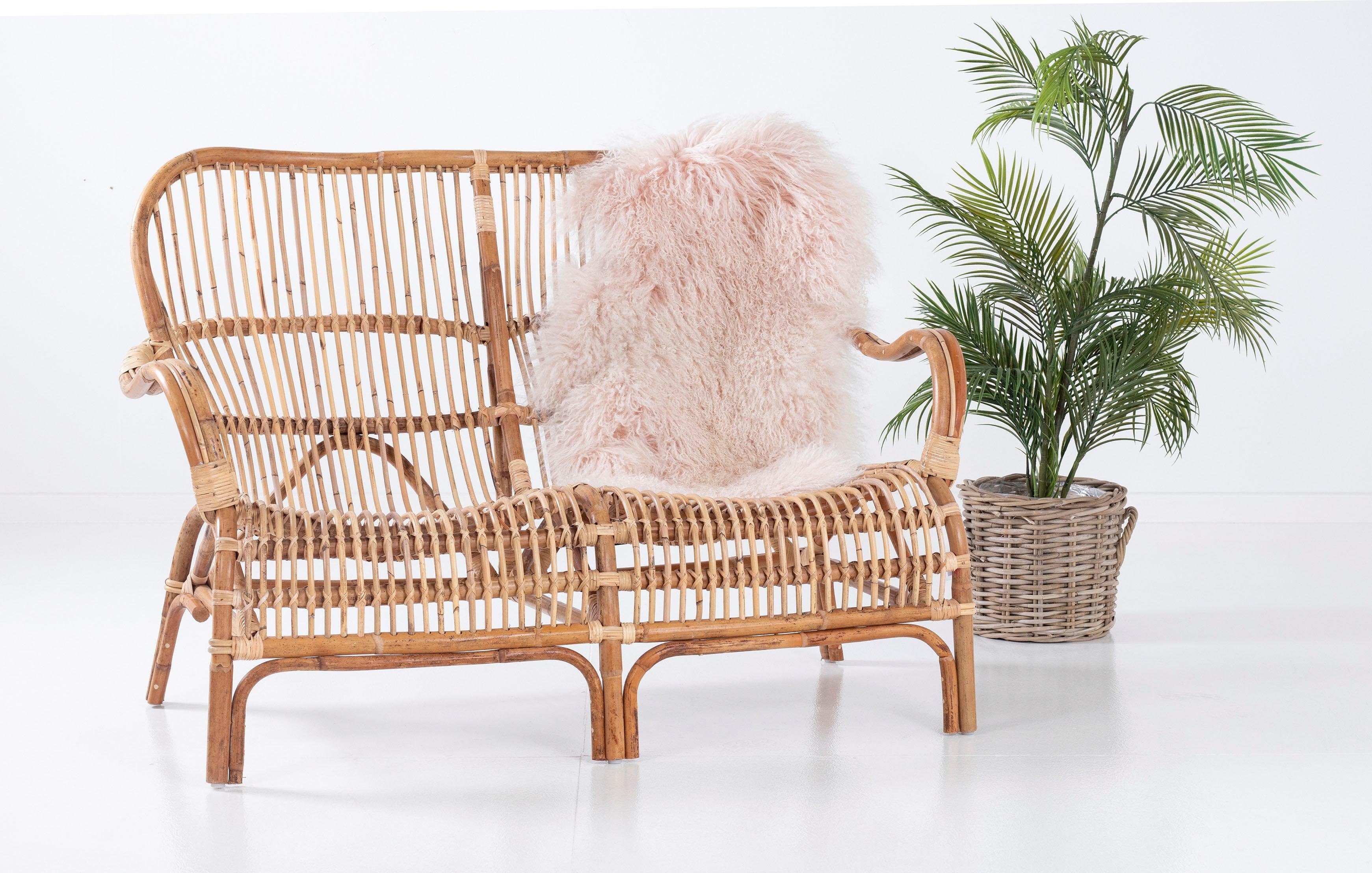 Rattan Sofa 2 Sitzer Couch Sessel Bank 70er Jahre Mid