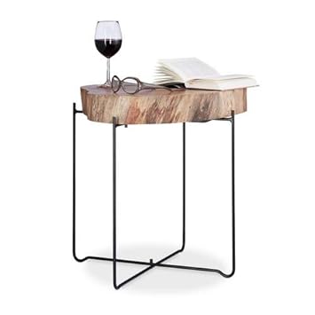 Relaxdays Beistelltisch Holz Rund Akazien Baumscheibe Mit