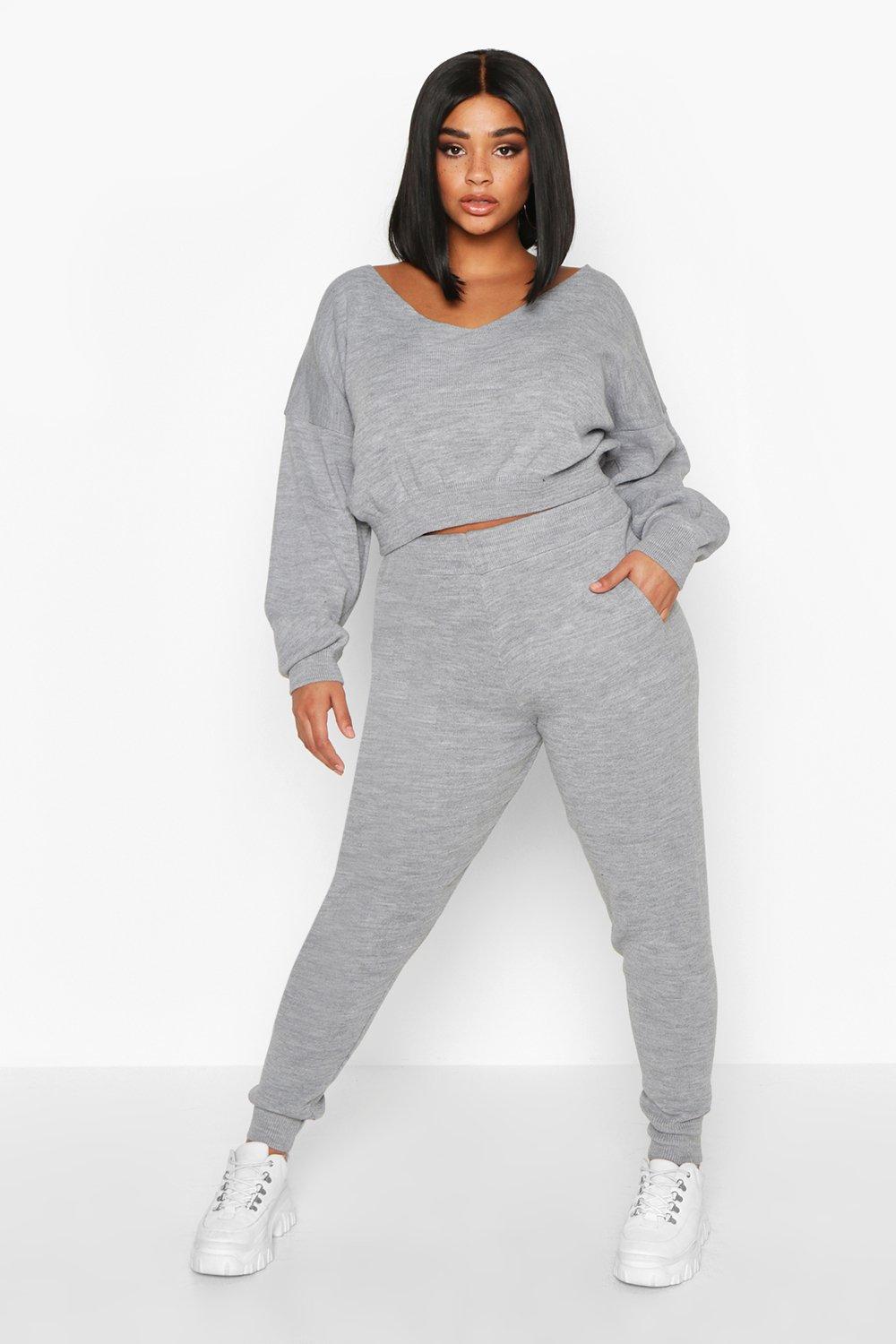 Shoptagr Plus Cropped V Neck Knitted Lounge Set By Boohoo